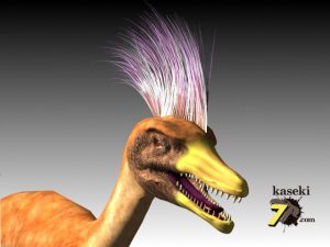 物を立体視できる大きな眼といかにもすばしっこいスレンダーな体が特徴の恐竜です。